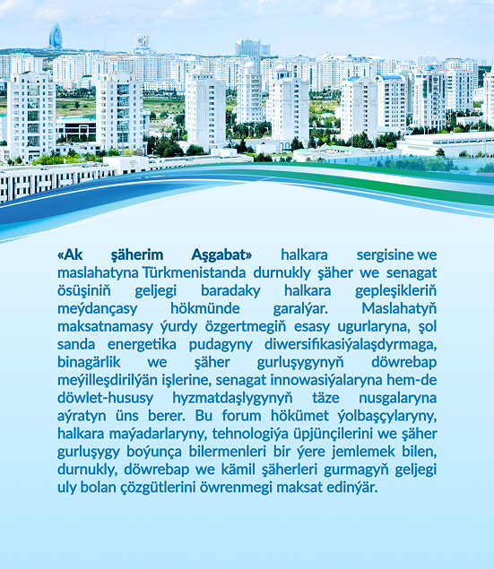 «Ak şäherim Aşgabat 2026» — paýtagtyň durnukly ösüşine, döwrebap binagärligine we intellektual düzümine bagyşlanan Türkmenistanyň esasy halkara meýdançasydyr. Forum Aşgabady ösdürmegiň nobatdaky tapgyryny hem-de «akylly» Arkadag şäherini ara alyp maslahatlaşmak üçin döwlet düzümlerini, halkara guramalaryny, maýadarlary, arhitektorlary, inženerleri we tehnologiýa kompaniýalaryny birleşdirýär.
